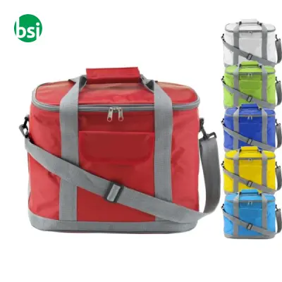 Juno thermal bag in 420D polyester with shoulder strap, zip closure, and front pocket. Choose your color and customize it!