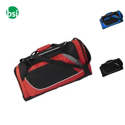 Ren sports duffel bag made of 600D polyester: spacious, with pockets and shoulder strap. Available in black, red, and cobalt blue. Convenient size!