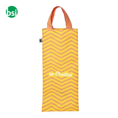 Customizable wine bag, perfect for events and corporate gifts. Made from recycled polyester, it combines practicality and eco-friendliness.