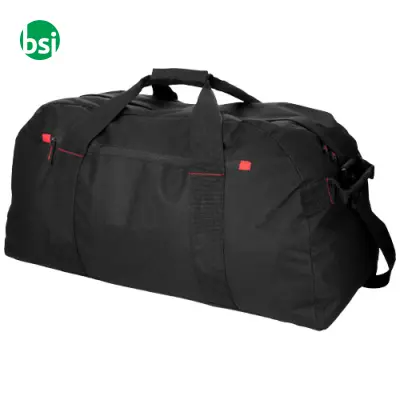 Extra-large 75L Vancouver travel bag, customizable and durable, perfect for any adventure. Dimensions: 74x38x34 cm. Available in black/red.