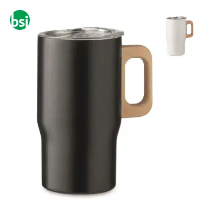 350ml double-walled mug made from recycled stainless steel. Elegant, customizable, and sustainable design. Available in black and white.