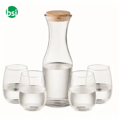 Recycled glass glasses and carafe, elegant and natural. Ideal for wines and spirits. Discover the comfort of cork!