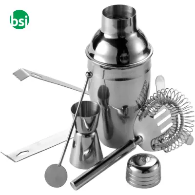 Christmas cocktail set in stainless steel, complete with 5 accessories. Ideal for bartenders and cocktail enthusiasts, gift packaging included.