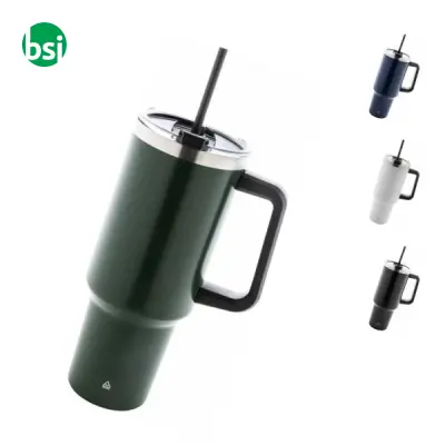Stay hydrated with the MASSIMUS thermal mug: 1200 ml, double-wall, keeps drinks hot for 12 hours and cold for 26. Eco-friendly and easy to clean!