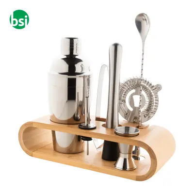 Paloma cocktail set: perfect for parties or gatherings, this 7-piece stainless steel set with a bamboo base includes a shaker, jigger, strainer, and more.