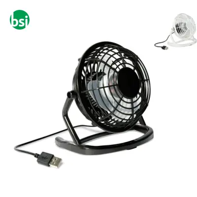 USB AIRY fan in ABS, compact and lightweight. Available in black and white, ideal for the desk. Customizable to suit any need.