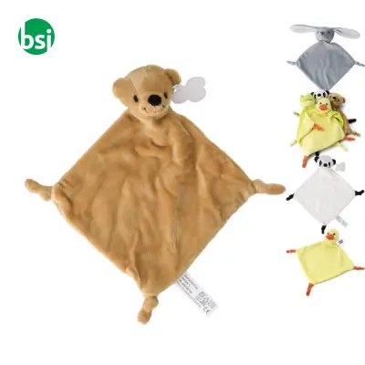 Soft polyester plush Doudou, customizable with embroidery and labels. Available in various colors, practical and lightweight. Perfect for gifts!