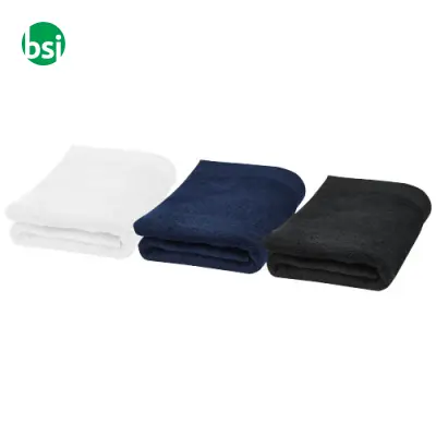 Customizable 70x140cm cotton towel, 550gr, soft and eco-friendly. Available in various colors. Perfect for bathroom and hotels!