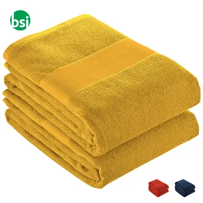 100% cotton terry towel, 70x140 cm, customizable. Available in yellow, blue, and red. Ideal for any event! Discover printing options.