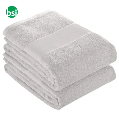 Customizable cotton terry towel (70x140 cm). Screen printing, transfer, and embroidery options available. Perfect for any event!