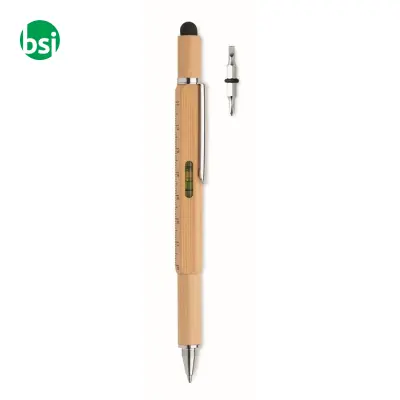 Stylish and versatile bamboo leveling pen with ruler and screwdriver tips. Ideal for eco-friendly promotional gadgets!