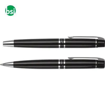 Cheap plastic pens or with accessories, elegant parures, customisable by pad printing or laser engraving.