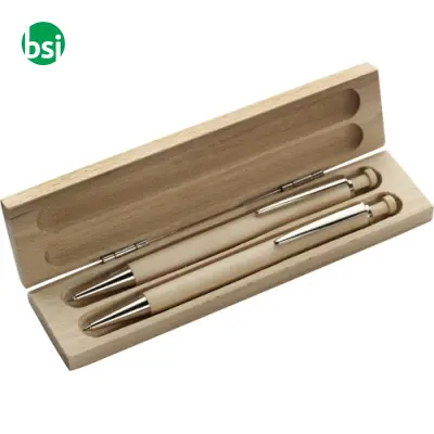 Stylish Morris wooden set, customizable pen and pencil. Perfect as a gift, comes in an elegant gift box.
