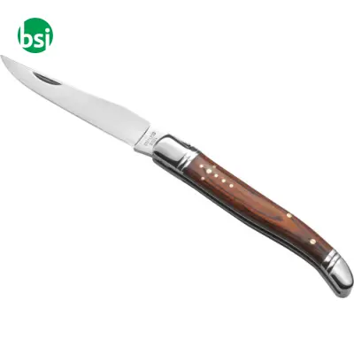 Stainless steel pocket knife with Pakka wood handle. Elegant design, perfect for gifts. Maximum customization available!