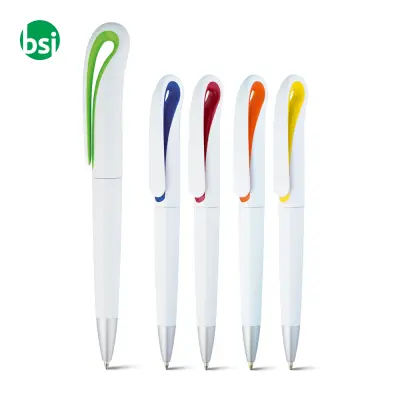 TOUCAN ballpoint pen with clip, available in 5 colors. Customizable with digital and pad printing. Minimum order 50 pcs.