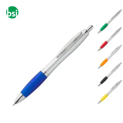 Lumpy ballpoint pen: style and comfort blend in an elegant design. With a silver body and colorful rubber grip, it's perfect for offices and events. Customizable to enhance your brand, it offers smooth writing with a blue refill. Available in various colors, it's a must-have for practicality and originality.
