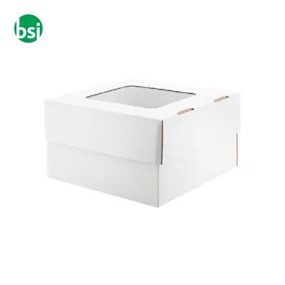 Corrugated cardboard gift box with window, customizable and available in flat packs. Minimum order of 50 pieces, Made in Hungary.