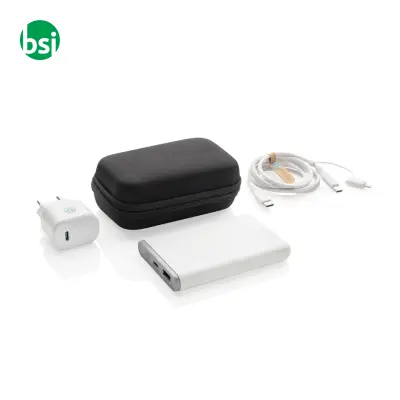 20W type C charging set: 3 eco-friendly pieces for fast and sustainable charging. Includes adapter, power bank, and recycled cable.