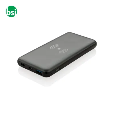10,000 mAh wireless power bank with fast charging. Sturdy design, USB and PD port, perfect for charging your devices on the go!