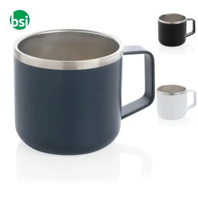 Insulated stainless steel camp cup, light and durable. 350 ml capacity, available in black, white and blue. Perfect for any adventure!